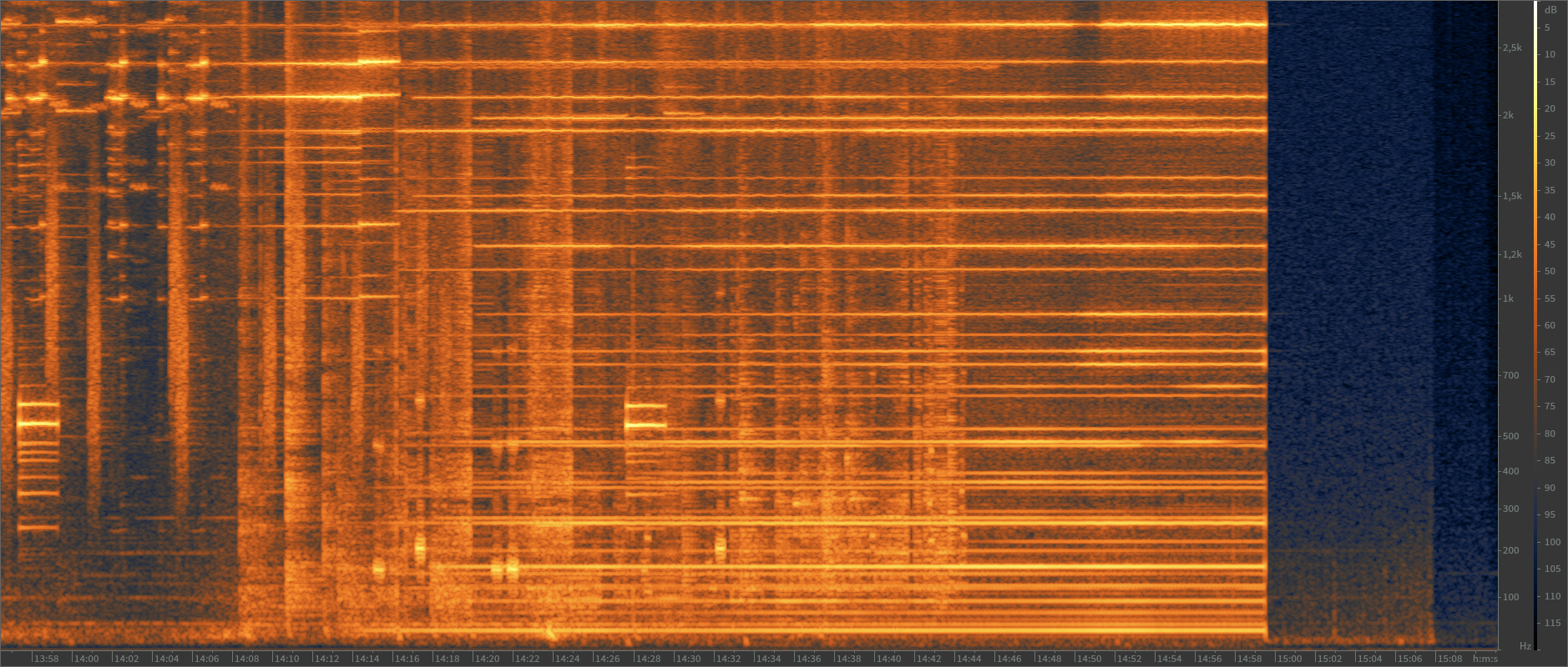 Abbildung 37: Tratto, Digitalisat des Kölner Tonbands, spektrographische Darstellung des Schlussklanges (Ausschnitt aus Spur 1)
